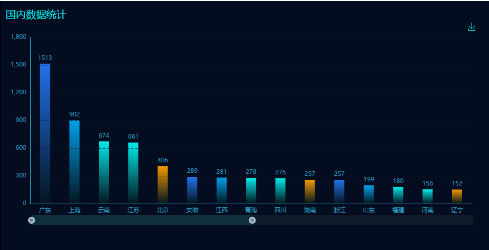 中国大陆地区广东使用数量最多,共有1513 个;上海第二,共有 902 个;云南第三,共有 674 个;江苏第四,共有 661 个;北京第五,共有 406 个。