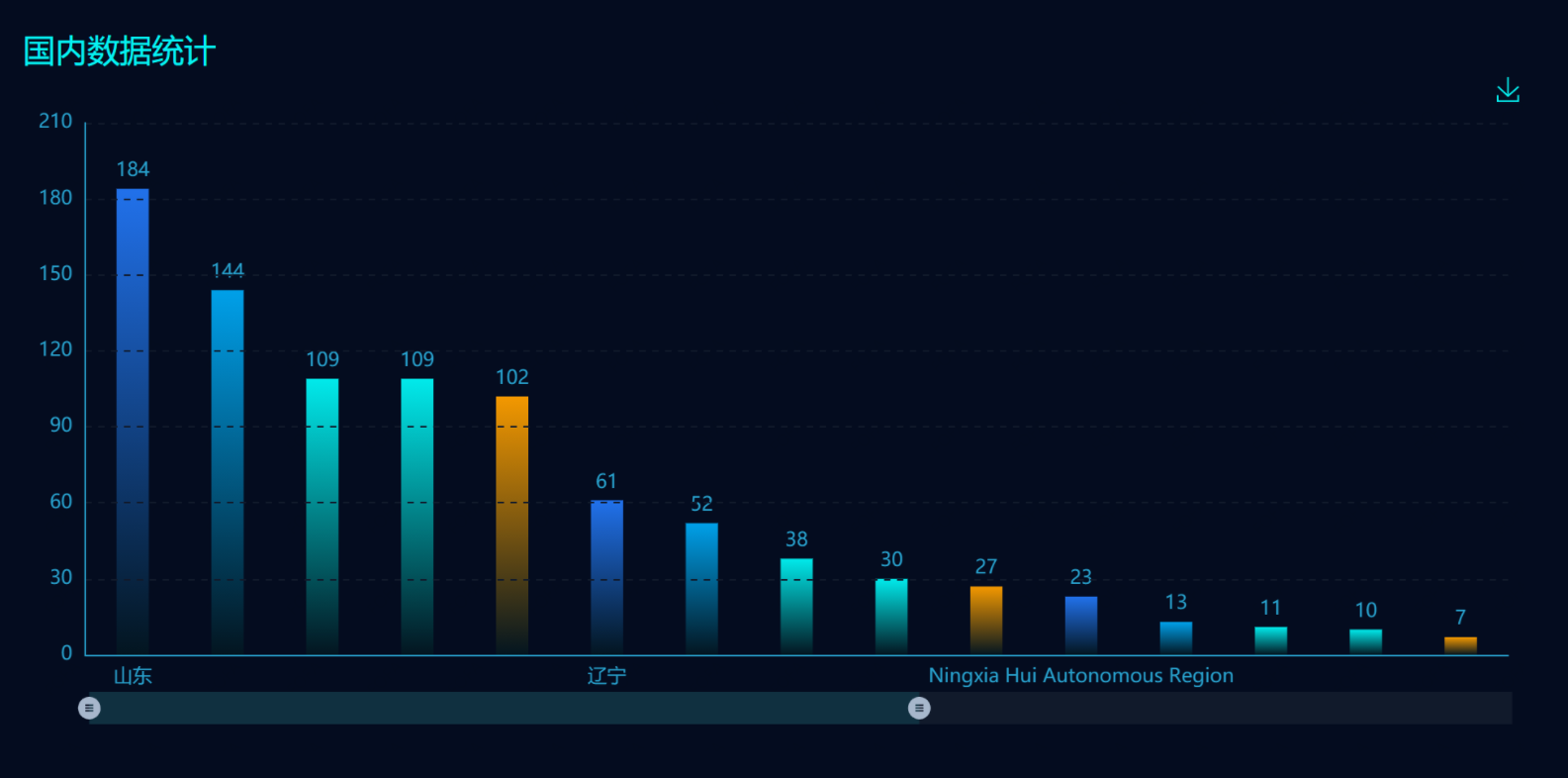 中国大陆地区山东使用数量最多,共有 184个;广东第二,共有 144 个;安徽第三,共有 109 个;上海第四,共有 109 个;北京第五,共有 102 个。